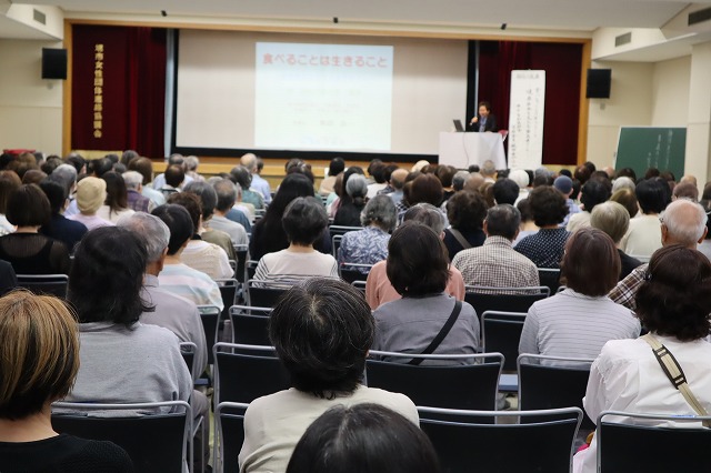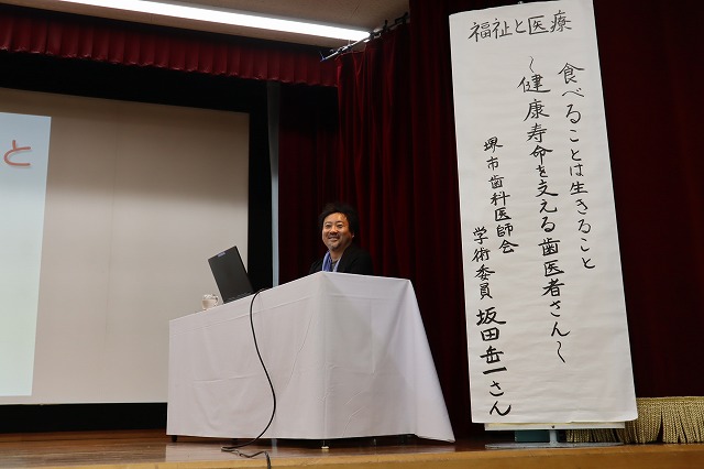 最初に歯科医療の現状①虫歯 ②歯周病 ③義歯の説明を聴いた。最近は子どもの虫歯の罹患率は減少傾向にある一方、高齢者の罹患率が増加しているとのこと。「8020」の達成者も61.5%にものぼる。健康寿命を延ばすための重要点は『行動がなければ機能低下は加速していく』ので、普段から栄養価が高い食品を摂取し、適度な運動、そしてかかりつけの歯科医をもつことだという講義を受けた。