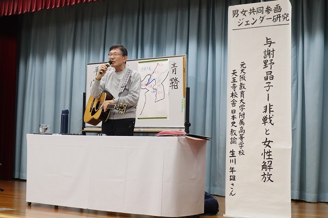 コクリコさかいの1Fロビーにある晶子像の台座に、「すべて眠りし女、今ぞ目覚めて動くなる」と刻まれてある。「青鞜」創刊号に寄せた一節。女性の地位が低かった当時の時代背景を学び、ますます晶子の偉大さを再確認できた。