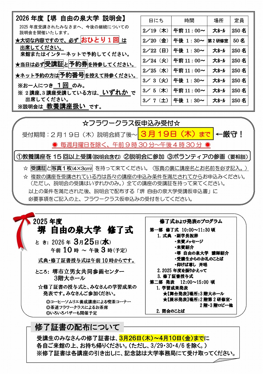 11月よりセンター3階大ホールの定員が200名に増員となり、今現在お申込み可能な講座が多数ありますので